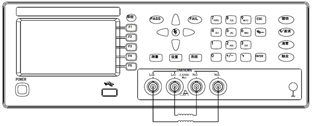 儀器一共四個測試端,從左到右依次為:Lcur,Lpot,Hpot,Hcur